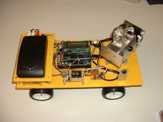 The hart of the system is Handy Board controller board based on Motorola 68HC11 microcontroller. It was designed by MIT professor and under free licensing anyone can use his design for their own purpose.  It has four motor outputs, six servo outpours, and several analog and digital inputs and outputs. The board can be programmed in C language significantly reducing code size and time required to complete as opposed to assembly.